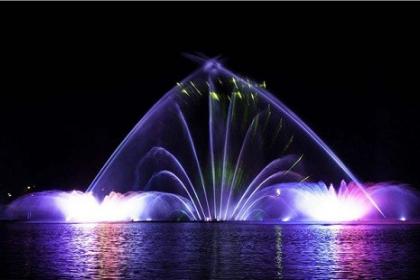 试想,在夜幕降临的时候,你站在高处,从空中俯视音乐喷泉,看到各种喷泉变换“身形”,闪烁跳跃,动感十足时,你是不是也内心澎湃。当看到万千水柱喷涌齐发时,密密的水柱在水面上方,形成了一道巨大的屏幕,伴随灯光投影,在大屏幕上时而出现的绚丽的色彩、时而不停变换的图案和悦耳的音乐时,你是不是也觉得它很神奇。相信热爱生活,懂生活的人都会喜欢这样的风景。